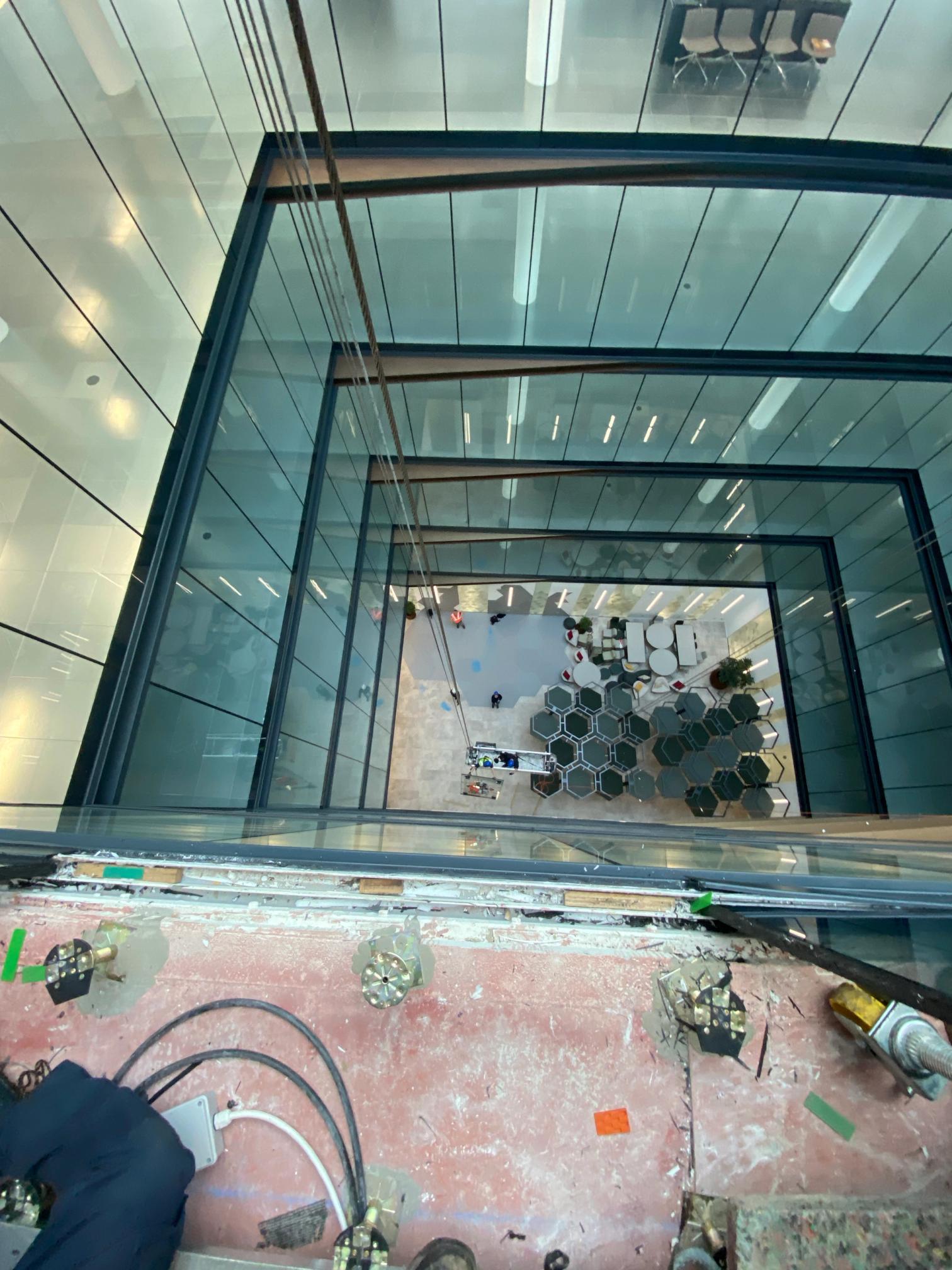 Our client required us to carry out glazing replacement of a specialist fire rated glass product located internally on the 6th floor overlooking the main lobby area.